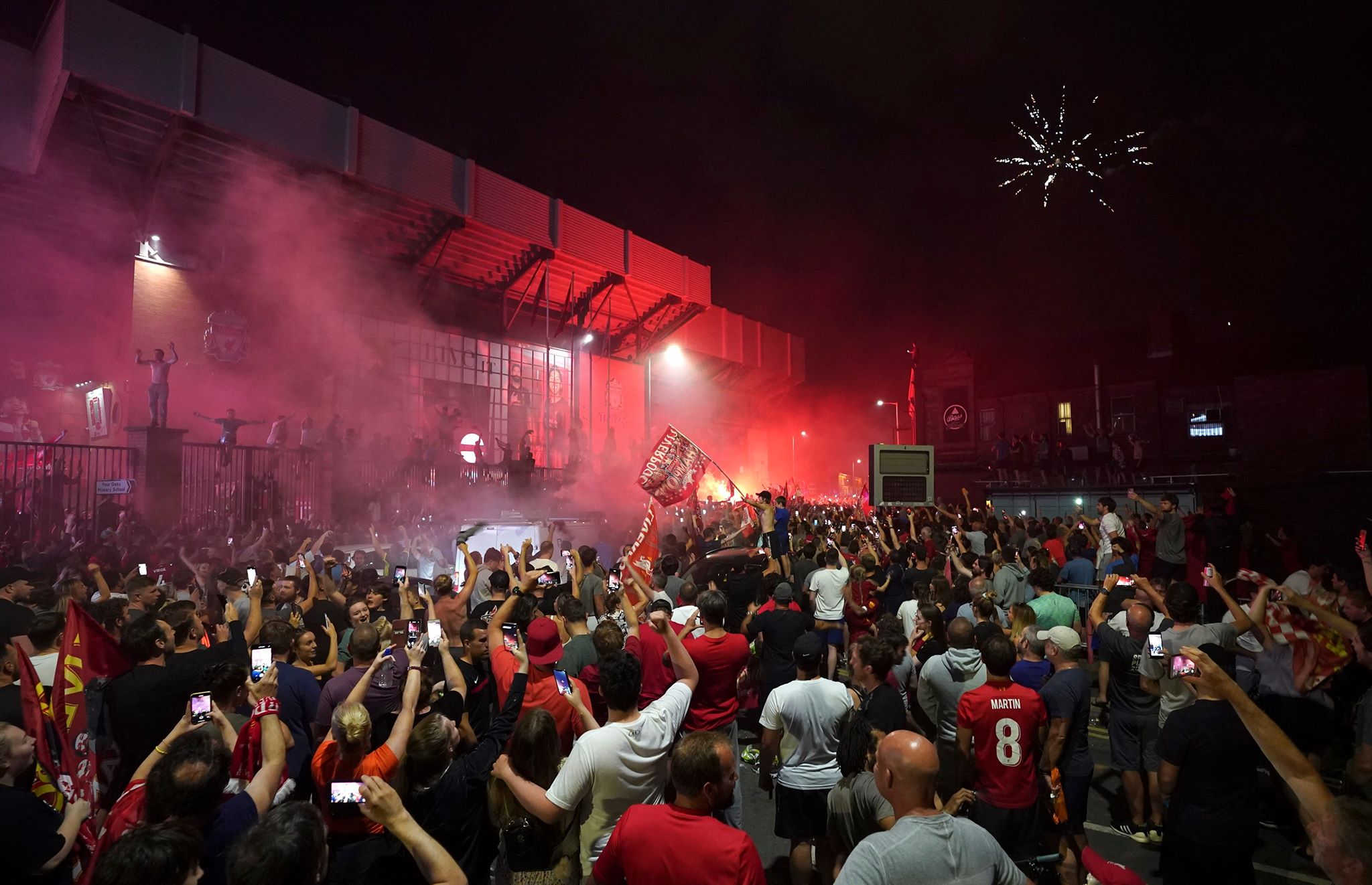 हातमा झन्डा र फ्लायर्स (झिलझिले पटका) बोकेर लिभरपुलका समर्थक सडकमा उत्रिएका थिए। उनीहरूलाई न महामारीको त्रास थियो न सरकारी प्रतिबन्धको। तीन दशकपछि आफ्नो क्लबले लिगकाे उपाधि जित्दाको खुशीले उनीहरूलाई घरमै रोकेर राख्न सकेन। एकअर्कासँग खुशी बाँड्न हजारौं समर्थक सडकमा उत्रिए।