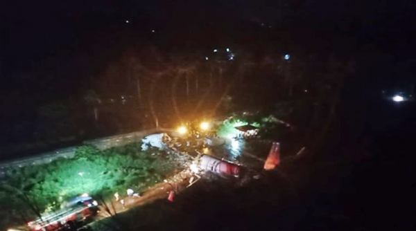 #WATCH Kerala: Dubai-Kozhikode Air India flight (IX-1344) with 190 people onboard skidded during landing at Karipur Airport today. (Video source: Karipur Airport official) pic.twitter.com/aX90CYve90