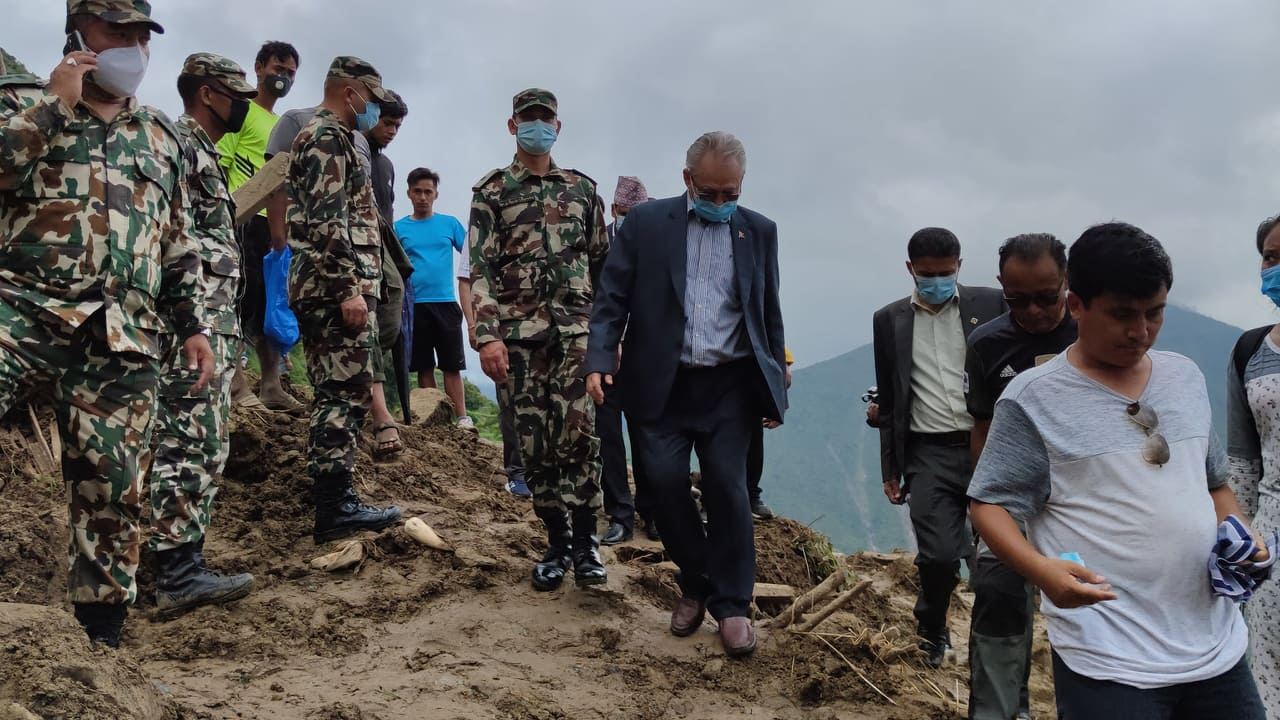 <p style="text-align: justify;">काठमाडौं। सिन्धुपाल्चोकको जुगल गाउँपालिका–२ लिदीको पहिरोग्रस्त क्षेत्रको गृहमन्त्री रामबहादुर थापाले अवलोकन गरेका छन्। सो क्रममा उनले पीडित परिवारलाई केही राहत पनि वितरण पनि हस्तान्तरण गरे। आज विहान लिदीमा गएको पहिरोमा ३७ घर पुरिएका थिए। जसमा ३८ जना परेका थिए। पुरिएकामध्ये अहिलेसम्म ११ जनाको शव निकालिसकिएको छ। </p>