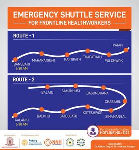 निःशुल्क यातायात सेवाको अभियानबारे स्वास्थ्यकर्मीहरूले थप जानकारी लिनु परे वा सेवा चाहिए ११४७ नम्बरमा फोन गर्न अभियानकर्मीले सुझाएका छन्।