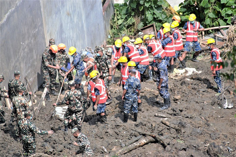 शनिबार बिहानैदेखि नेपाली सेना र सशस्त्र प्रहरी मरेका गाईहरू निकाल्न व्यस्त छन्। पुरिएका गोठभित्रबाट मरेका गाई निकाल्न उनीहरूलाई मुस्किल छ।