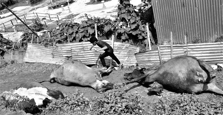 काठमाडौं । “दिनमै ७० लिटर दूध दुन्थें, बजारमा १०० रूपैयाँ लिटर छ तर, रातिको पहिरोले पुरिएर ६ वटा गाई मरे र १५ लाख रूपैयाँको क्षति भयो।”
