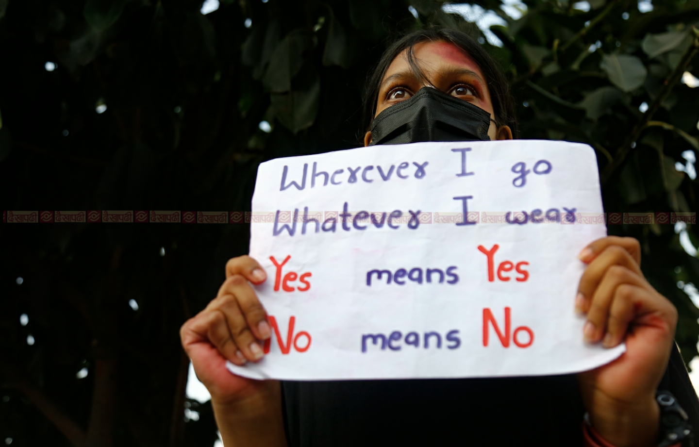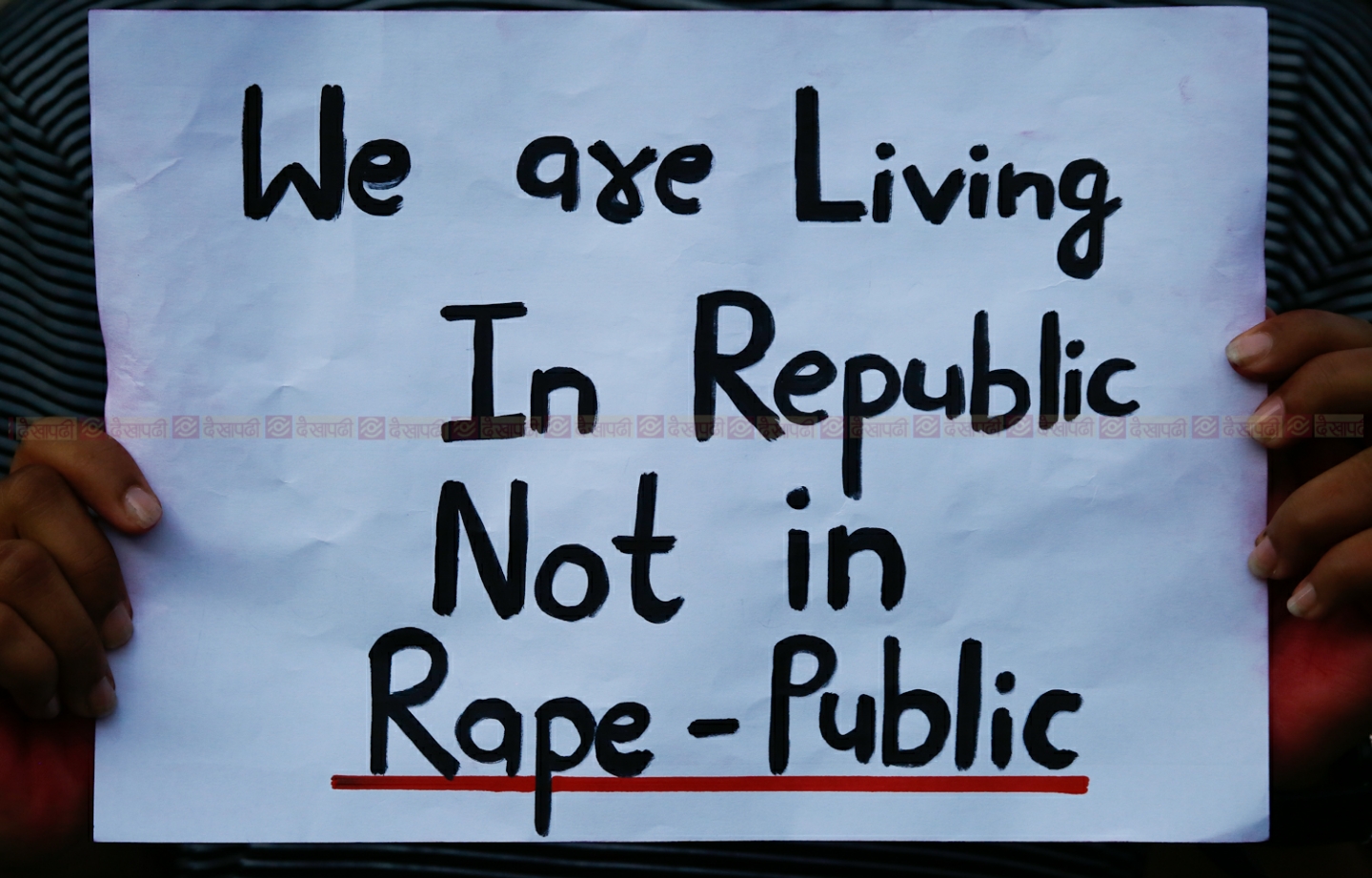 <p style="text-align: justify;">काठमाडौं। बलात्कारका घटनाहरू बढ्दै जाँदा हिजोआज काठमाडौंको माईतीघर मण्डलामा दिनहुँजसो विभिन्न शैलीमा प्रदर्शन भइरहेको देख्न सकिन्छ। बलात्कारका घटना रोक्नका लागि दबाब सृजना गर्ने उद्देश्यले हुँदै आएका यस्ता प्रदर्शनमा बलात्कारीलाई कडा कारबाहीको माग गरिएको हुन्छ। कुनै विरोध प्रदर्शनमा बलात्कारीलाई फाँसीकै सजाय दिनुपर्ने माग गरिएको हुन्छ त कुनै प्रदर्शन आजीवन जेल सजाय हुनुपर्ने पक्षमा देखिन्छन्। आज पनि माईतीघर मण्डलामा बलात्कारका घटनाको सांकेतिक विरोध भयो। जहाँ युवाहरूले सडक नाटकमार्फत बलात्कारका घटनाप्रति विरोध जनाए र दोषीलाई कडा कारबाहीका लागि दबाब बनाए।<br />