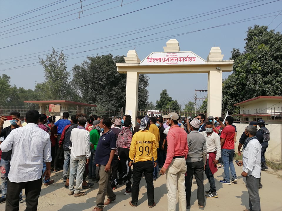अहिले जिल्ला प्रशासन कार्यालय अगाडि प्रदर्शनकारीहरू धर्नामा बसेका छन्।