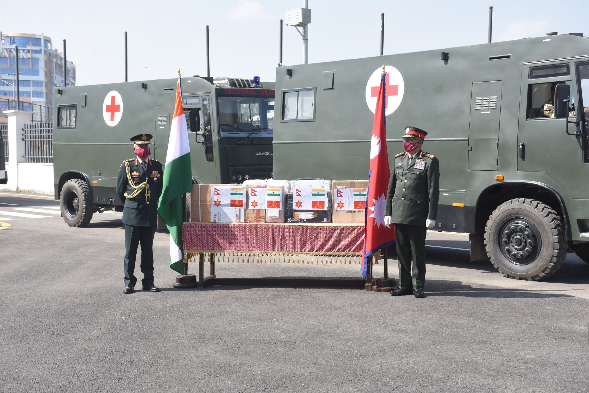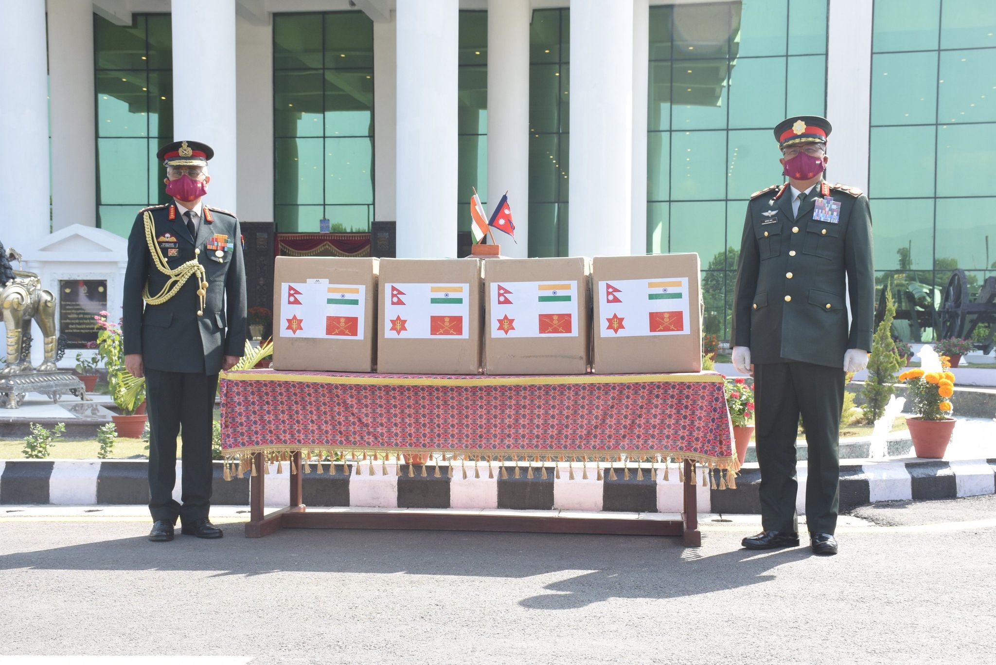 भारतीय स्थल सेनाध्यक्ष नरवणेले आज नेपाली सेनाका दुई फिल्ड अस्पताललाई एक्स–रे मेसिन, आइसीयु भेन्टिलेटर, भिडियो इण्डोस्कोपी युनिट, एनेस्थेसीया मेसिन, एम्बुलेन्स लगायतका स्वास्थ्य सामाग्री प्रदान गरेका हुन्।