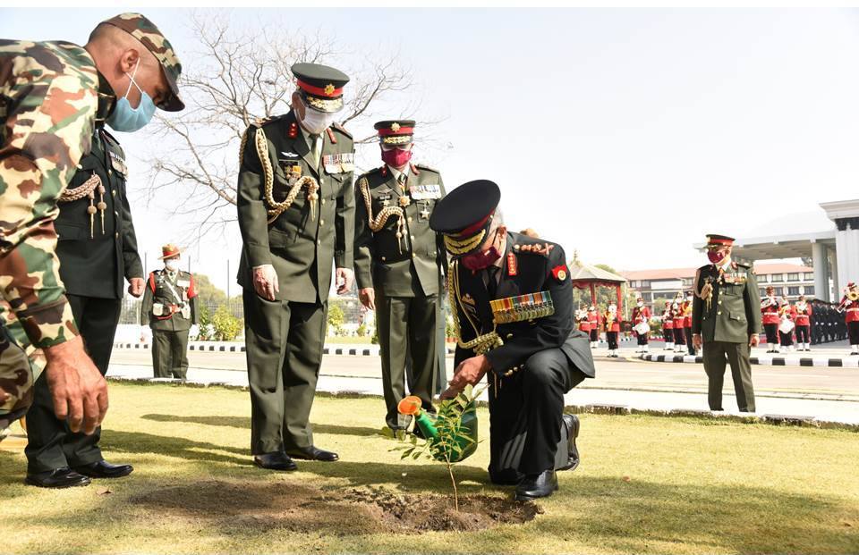 भारतीय स्थल सेनाध्यक्ष रणवणेले जङ्गी अड्डा प्राङ्गणमा ओखरको बिरुवा रोपेका थिए।