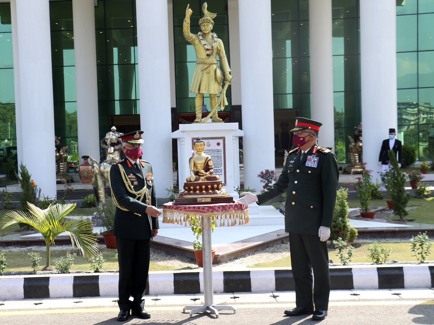 आज सैनिक मुख्यालय जंगी अड्डामा आयोजना गरिएको एक कार्यक्रममा प्रधानसेनापति पूर्णचन्द्र थापाले भारतीय स्थल सेनाध्यक्ष मनोज मुकुन्द नरवणेलाई ती मास्क हस्तान्तरण गरेका हुन्।