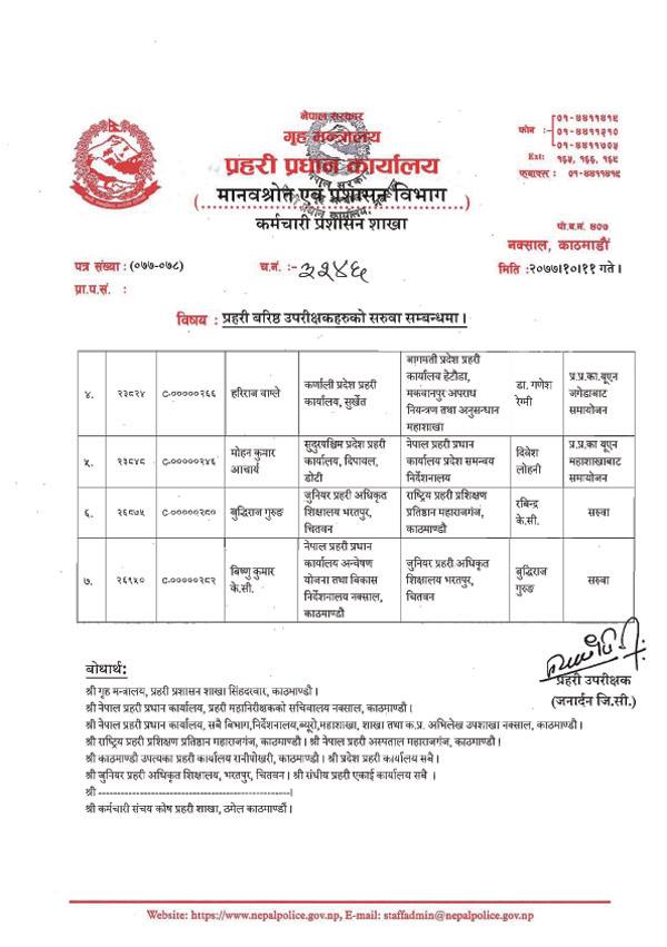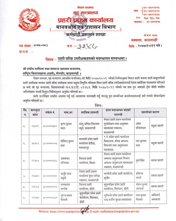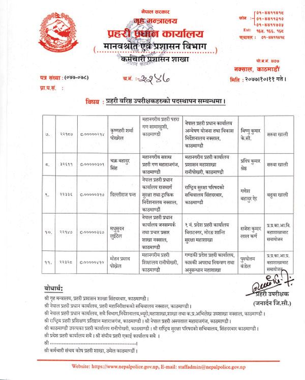 नेपाल प्रहरीका १८ एसएसपीको सरूवा र पदस्थापन (सूचीसहित)