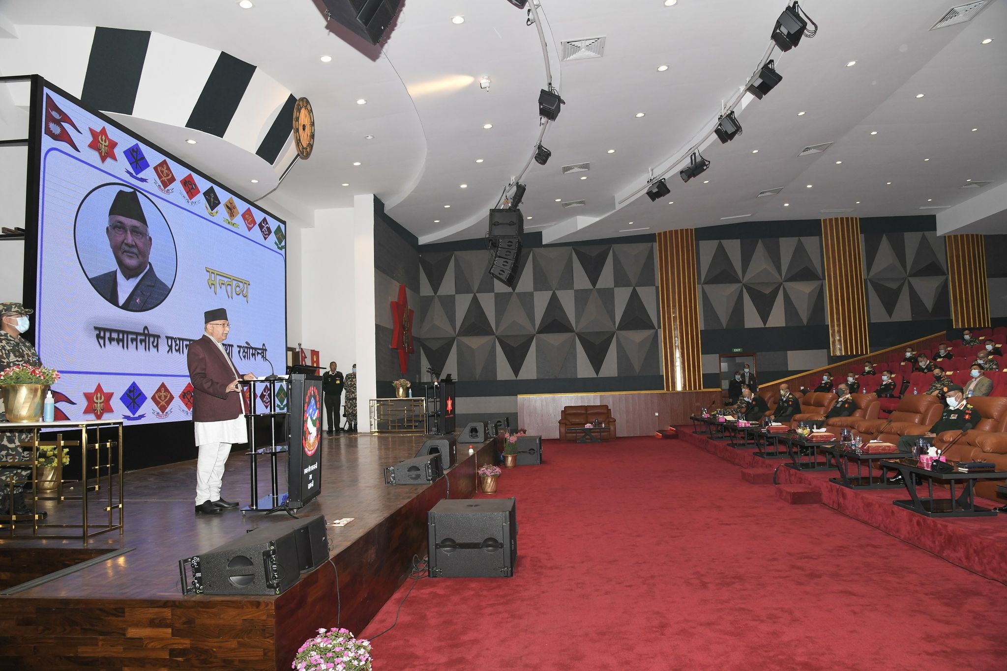 शुभारम्भ कार्यक्रममा बोल्दै प्रधानमन्त्री ओलीले नेपाली सेनाको व्यावसायिकता, लगनशीलता र कर्तव्यबोधको भावनाको उच्च प्रशंसा गरेका थिए।