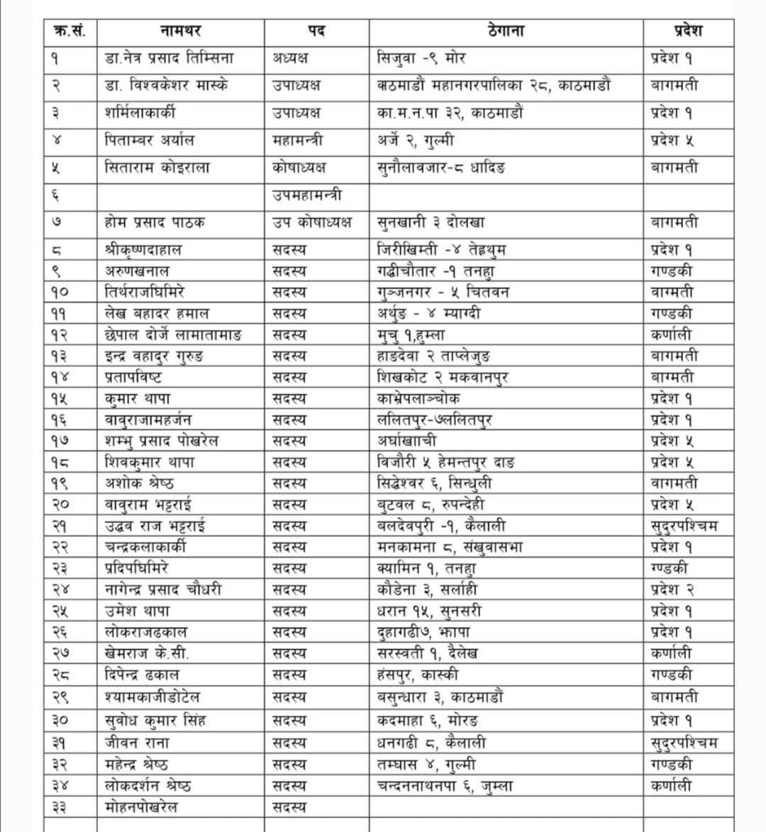 <p style="text-align: justify;">त्यस्तै उपाध्यक्षमा विश्वकेशर मास्के र शर्मिला कार्कीलाई चयन गरिएको छ।</p>