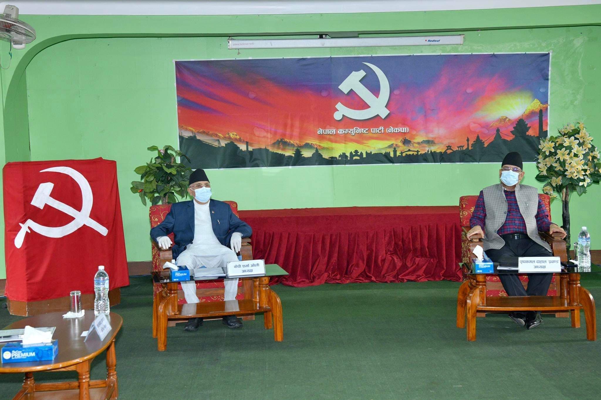 " /> काठमाडौं। सत्तारुढ नेपाल कम्युनिष्ट पार्टी (नेकपा) को सचिवालय बैठक शुरू भएको छ।पेरिसडाँडास्थित पूर्वमाओवादीको केन्द्रीय कार्यालयमा केहीबेरअघिबाट बैठक शुरू भएको हो। बैठकमा अध्यक्षसमेत रहेका प्रधानमन्त्री केपी शर्मा ओली पनि उपस्थित छन्।