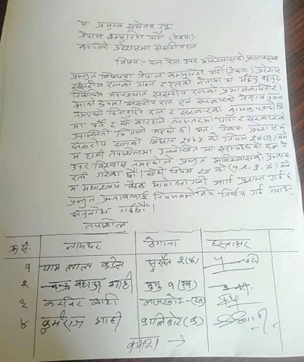 नेकपाकै सांसदहरुले दर्ता गरे कर्णालीका मुख्यमन्त्रीविरूद्ध अविश्वास प्रस्ताव: Dekhapadhi