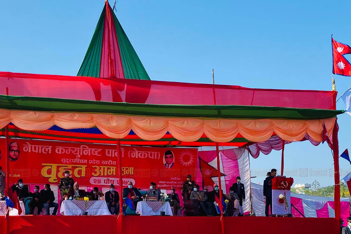 धनगढीमा आयोजित सुदूरपश्चिम प्रदेश कमिटीले आयोजना गरेको आमसभालाई सम्बोधन गर्दै प्रधानमन्त्री ओलीले बैशाख १० र १७ गते हुने निर्वाचनमा १० सिट जितेर देखाउन चुनौती दिएका हुन्।