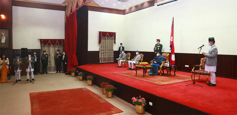 आज शितलनिवासमा विशेष समारोहबीच राष्ट्रपति विद्यादेवी भण्डारीकाे उपस्थितिमा उनीहरूलाई शपथ गराइएको हो।