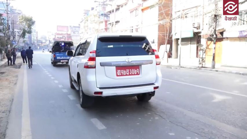 <p style="text-align: justify;">नेकपाका अध्यक्ष पुष्पकमल दाहाल प्रचण्ड बा १७ च ३० नम्बरको सेतो प्राडो गाडीमा सवार भएर उपत्यकाका विभिन्‍न स्थानको भ्रमण गरिरहेका छन्।</p>