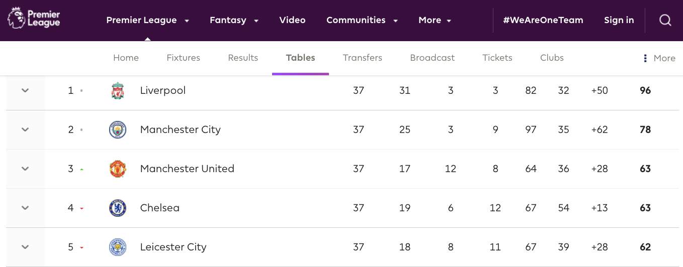 तेस्रो स्थानमा रहेको युनाइटेड र तेस्रो स्थानमा रहेको चेल्सीको समान ६३ अंक छ। पाँचौं स्थानमा रहेको लेस्टरको ६२ अंक छ। लेस्टरले तेस्रो स्थानको युनाइटेडलाई घरेलु मैदानमा आतिथ्य प्रदान गर्नेछ। शीर्ष चारभित्र युनाइटेडलाई बराबर खेले पुग्छ भने लेस्टरलाई जित्नै पर्ने दबाब छ।