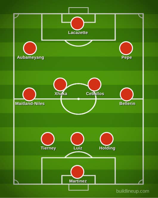 आर्सनलको अनुमानित शुरूआती ११ : मार्टिनेज, होल्डिङ, लुइज, टिर्ने, बेलेरिन, सेबायोस, ज्याका, मिटल्यान्ड लाइल्स, पेपे, लाकाजेटी, अबामियाङ ।