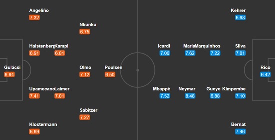 आरबी लाइपजिगः गुलाक्सी, क्लोटरम्यान, उपामेकानो, हल्सटेनबर्ग, एन्जेलिनो, आइमर, काम्पल, साबिट्जर, ओल्मो, एनकुन्कु, पउलसेन।