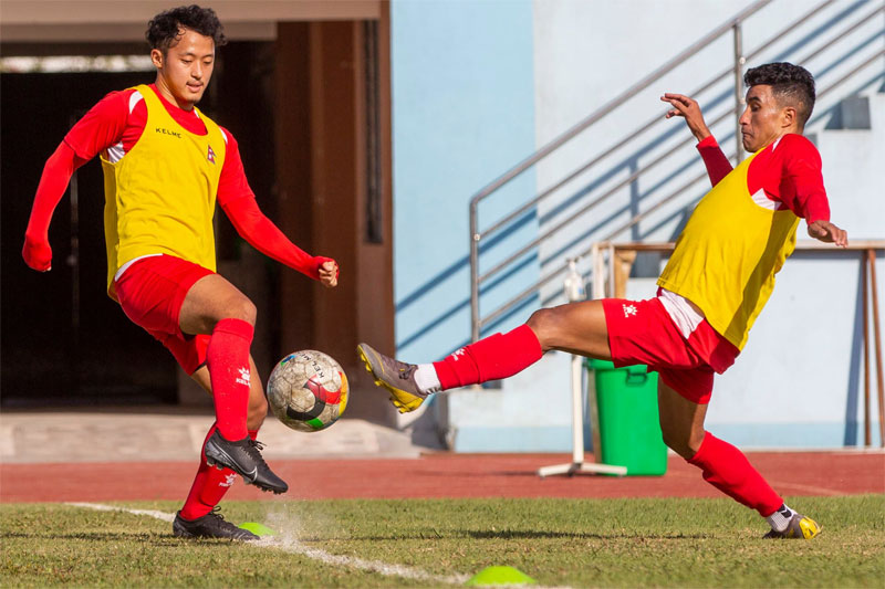 " /> काठमाडौं। नेपाली राष्ट्रिय फुटबल टीम मैदान नउत्रिएको ठ्याक्कै एक वर्ष भयो, महिनाको हिसाबले। दिन गन्ने हो भने नोभेम्बर १९ मा एक वर्ष पुग्छ। ठ्याक्कै एक वर्षपछि राष्ट्रिय फुटबल टीम मैत्रीपूर्ण खेलका लागि बंगलादेशमा छ।यति लामो समय राष्ट्रिय टीमले फुटबल नखेलेको कारण हो, कोभिड-१९। कतार विश्वकपको छनोट प्रतियोगितामा होमिएको नेपाली फुटबल टीमको यात्रालाई कोभिड-१९ ले झ्याप्प ब्रेक लगाइदिएको थियो। कोभिड-१९ कै कारण गत चैतयता नेपाली फुटबल टीमले अभ्याससम्म पनि गर्न पाएको थिएन।