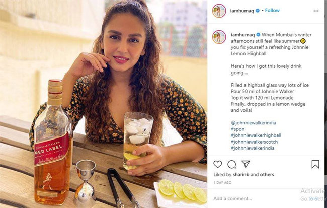 अभिनेत्री हुमा कुरैशीको एक तस्वीरका कारण ट्रोलको सिकार बनेकी हुन्। सामाजिक सञ्जालमा निकै सक्रिय रहने कुरैशीले इन्स्टाग्राममा एउटा रक्सीको ‘प्रमोसन’ गर्दै तस्वीर राखेकी थिइन्।