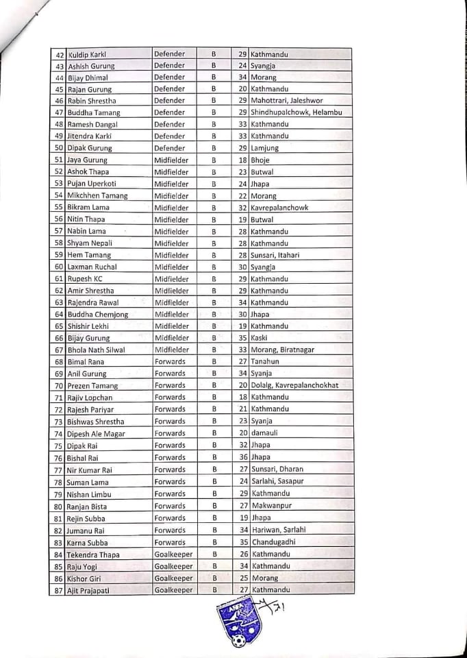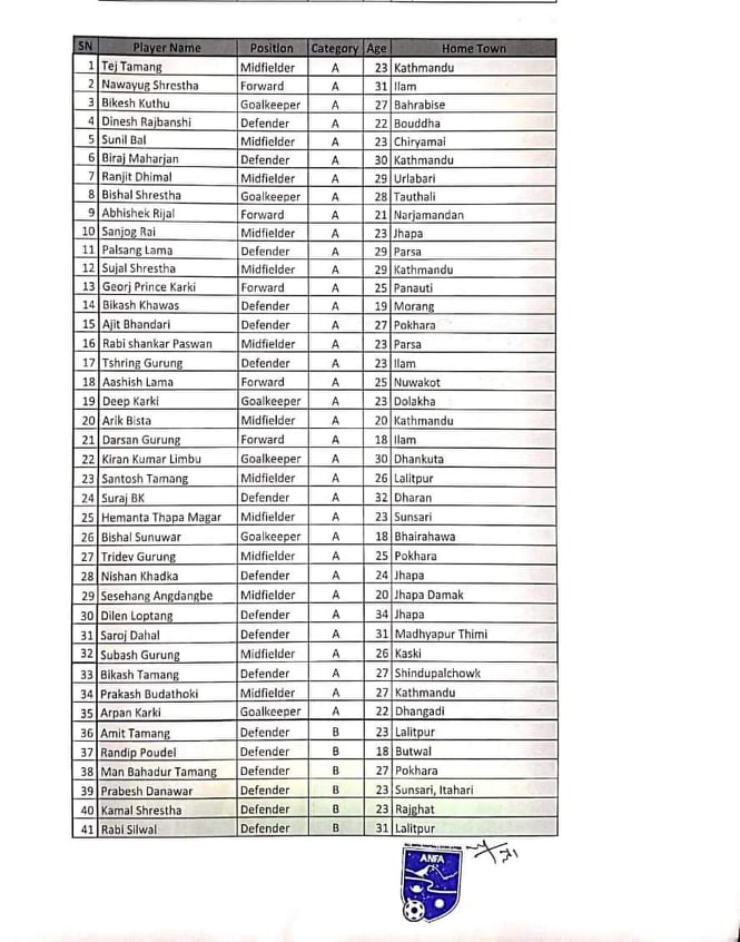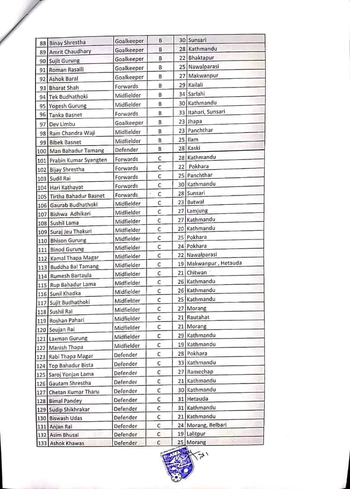 <p style="text-align: justify;">एन्फले १५८ खेलाडीलाई तीन समूहमा वर्गीकरण गरेको छ, जसअनुसार समूह ‘ए’ मा ३५ खेलाडी समावेश छन्। समूह ‘बी’मा ६५ र समूह ‘सी’मा ५८ खेलाडी समावेश छन्। </p>