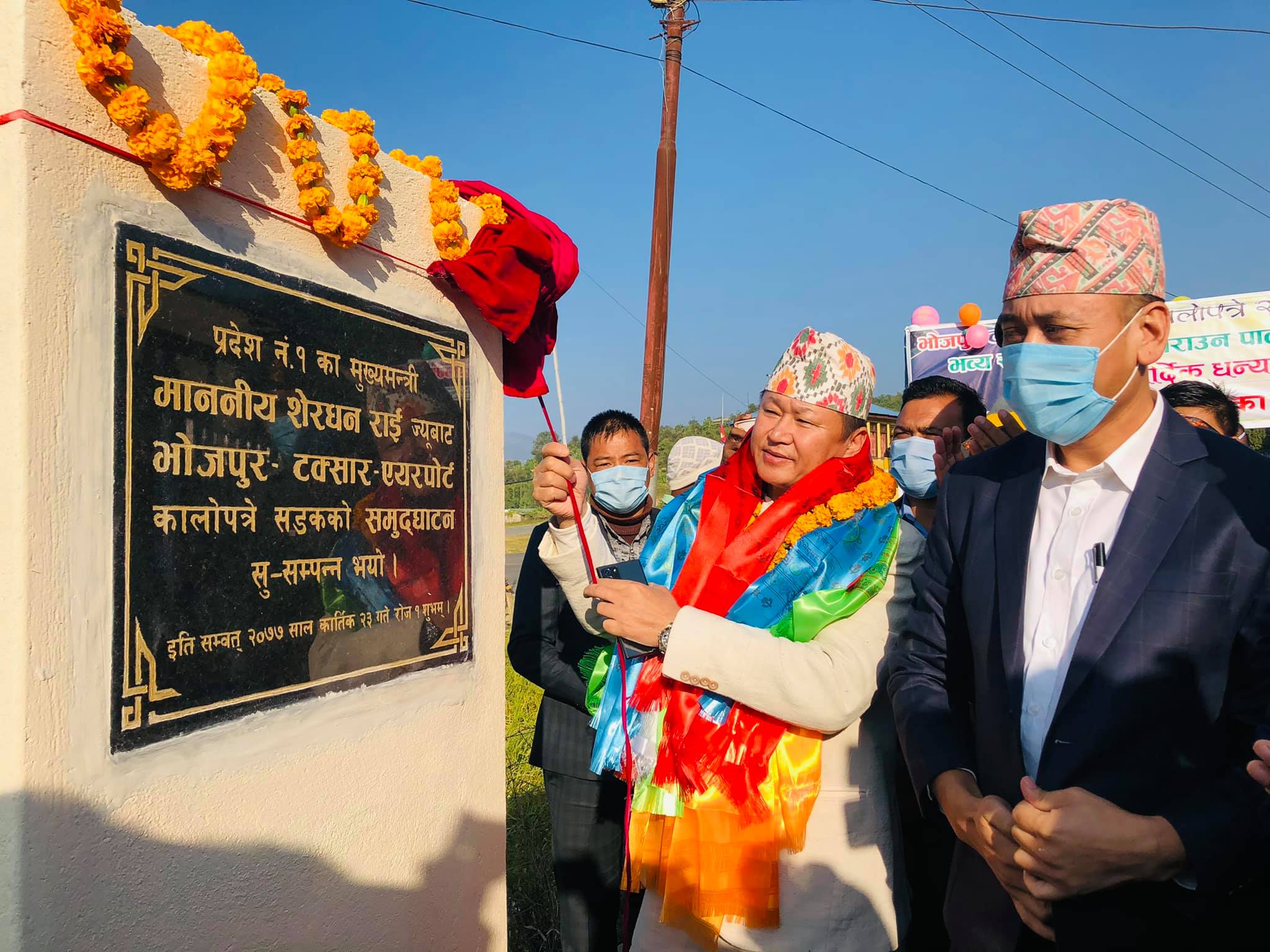 १७ कराेड लागतमा कालाेपत्रे भयाे भोजपुर-टक्सार विमानस्थल सडक, मुख्यमन्त्रीले गरे उद्घाटन