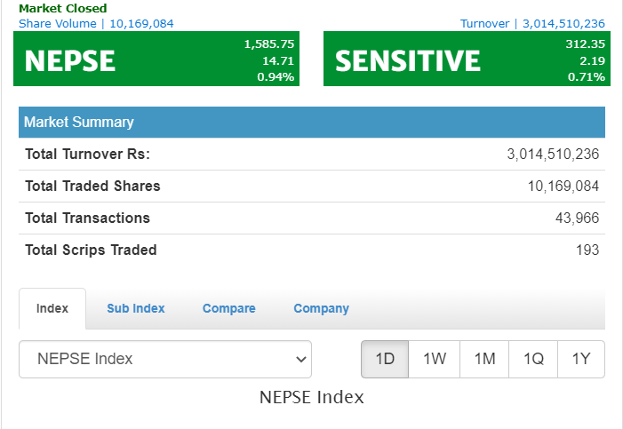साताको पहिलो दिन १४ अंक बढ्यो नेप्से, कारोबार ३ अर्बभन्दा माथि