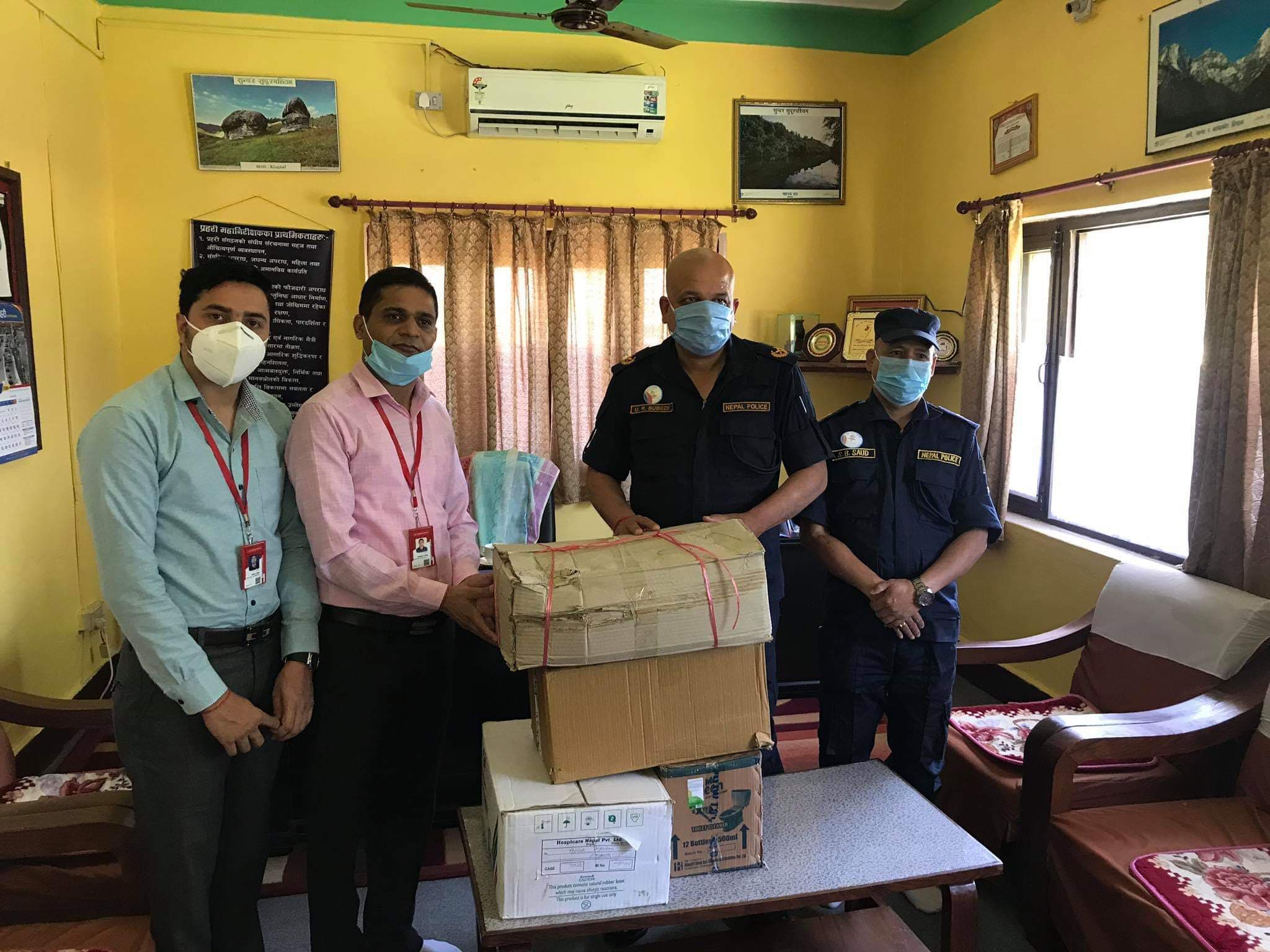 प्रभु बैंकले दियाे प्रहरीलाई स्वास्थ्य सामग्री