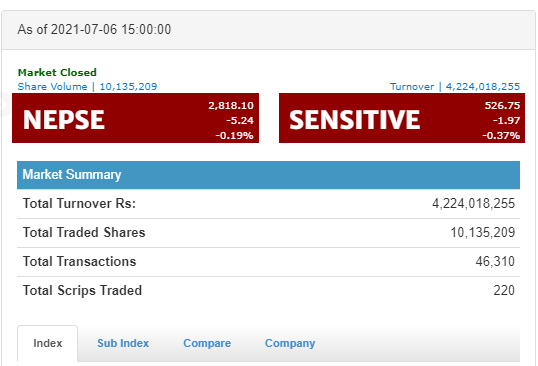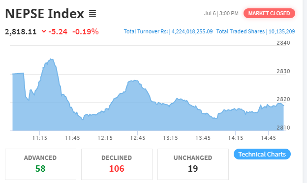 नेप्सेमा ५ अंकको गिरावट