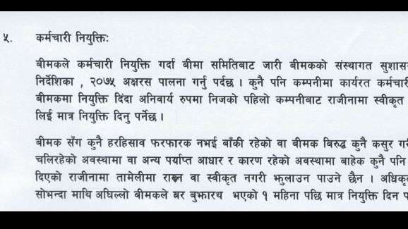 बीमाका कर्मचारीलाई एक महिनाको कुलिङ पिरियड