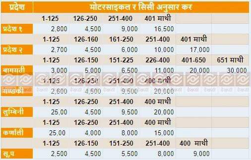 प्रदेशअनुसार सवारीसाधनमा फरक–फरक कर