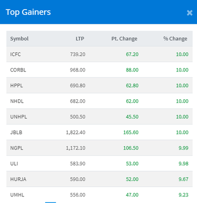 १० प्रतिशतले बढे पाँच कम्पनीको सेयर मूल्य