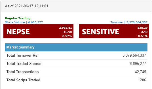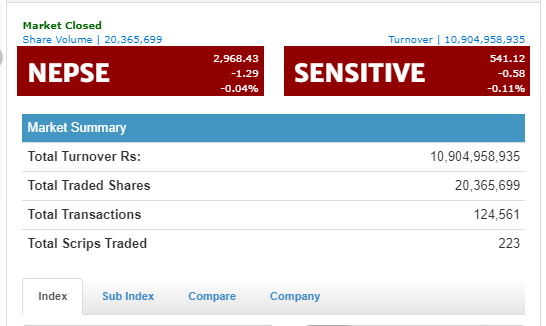 सामान्य गिरावटसँगै बन्द भयो नेप्से