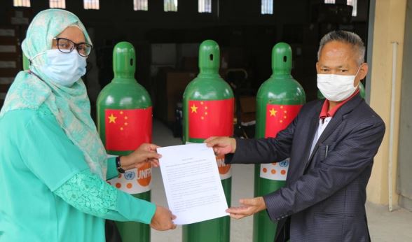 युएनएफपिएद्वारा नेपाललाई ८०० थान अक्सिजन सिलिन्डर हस्तान्तरण