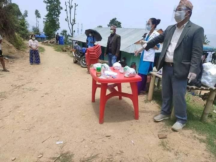 संक्रमितको घरमै पुगेर औषधि वितरण गर्दै सहिदभूमी गाउँपालिका