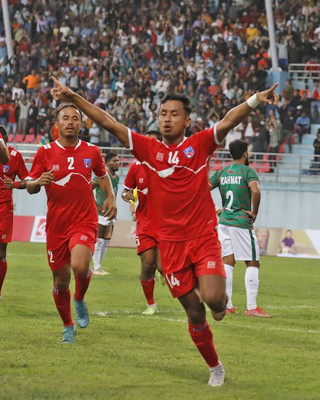 बंगलादेशविरुद्ध मैत्रीपूर्ण फुटबलमा अन्जन विष्टको ह्याट्रिक