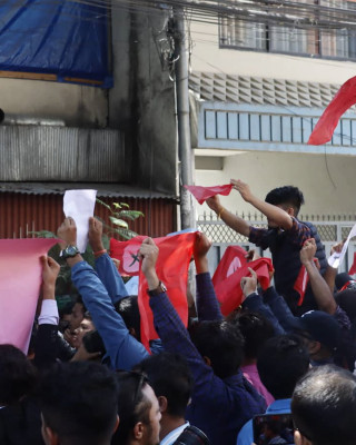 गभर्नरको राजीनामा माग्दै बालुवाटारमा प्रदर्शन