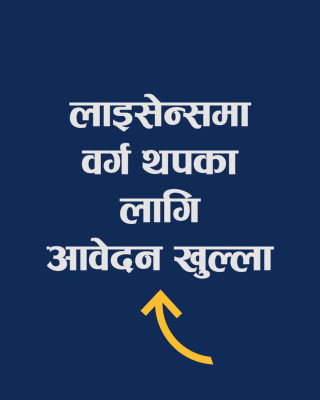 लाइसेन्समा वर्ग थपका लागि आवेदन खुल्ला