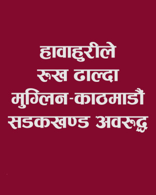 हावाहुरीले रुख ढाल्दा मुग्लिन–काठमाडौं सडकखण्ड अवरुद्ध