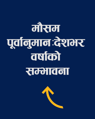मौसम पूर्वानुमान अनुसार आज देशभर वर्षाको सम्भावना रहेको
