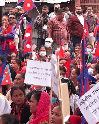 लघुवित्त संस्थाको खारेजीको माग गर्दै काठमाडौँमा प्रदर्शन