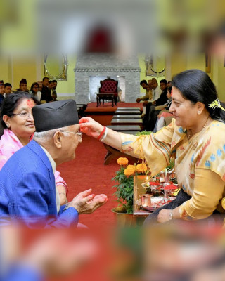 राष्ट्रपति विद्यादेवी भण्डारीद्वारा गुरूहरूको हातबाट टीका ग्रहण