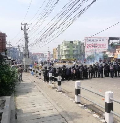 विराटनगरमा पहिचानवादी र प्रहरीबीच झडप, प्रहरीले हान्यो अश्रुग्यास