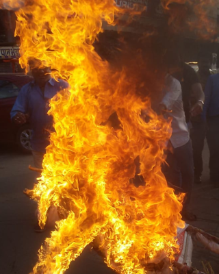 एकीकृत समाजवादी निकट अनेरास्ववियुद्वारा शिक्षामन्त्री खनालको पुत्ला दहन