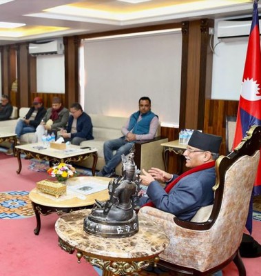 बालुवाटारमा प्रधानमन्त्री प्रचण्ड र ओलीबीच छलफल