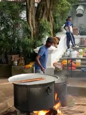 श्रीलंकाका प्रधानमन्त्रीको निवासमा प्रदर्शनकारीहरू खाना पकाउँदै