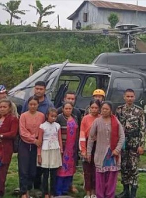 पाँचथरमा बाढीपहिरोमा फसेका १२ जनाको हेलिकप्टरबाट उद्धार