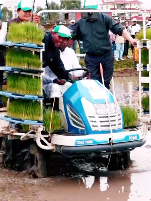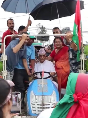 भक्तपुरमा केपी ओलीले मेसिनबाट गरे रोपाइँ
