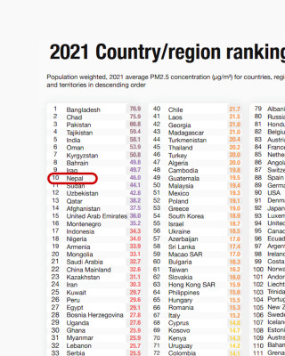 काठमाडौं विश्वकै छैटौं प्रदूषित सहर