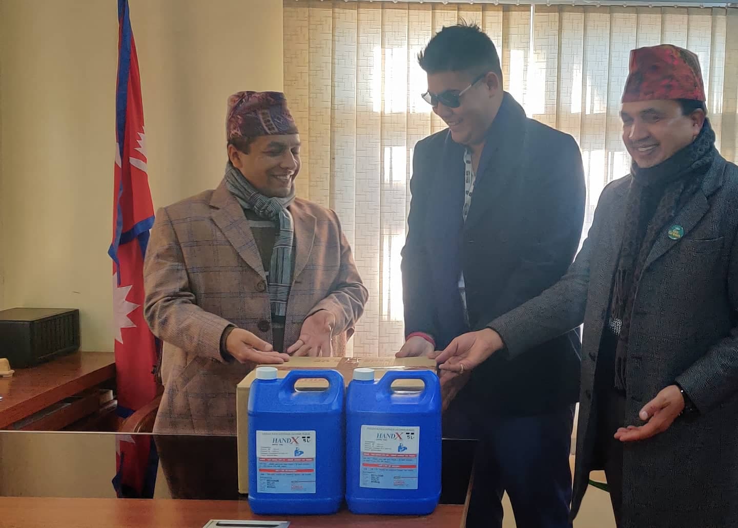पशुपति दर्शनार्थीलाई निःशुल्क स्यानिटाइजर, विकास कोषलाई लोमस फर्मासिटिकल्सको सहयोग